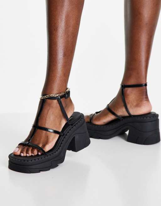 Topshop Wes premium leather chunky heeled strappy sandals in black