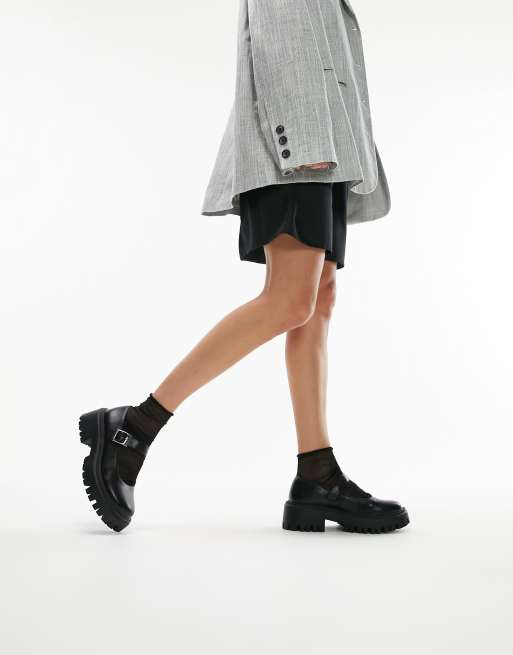 Topshop Wide Fit Amy chunky flat shoes with buckle in black