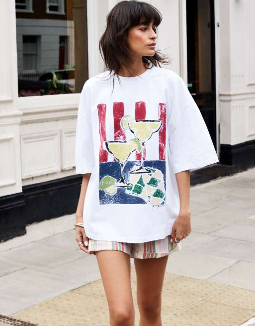 Topshop x Grace Percival oversized graphic t-shirt in white