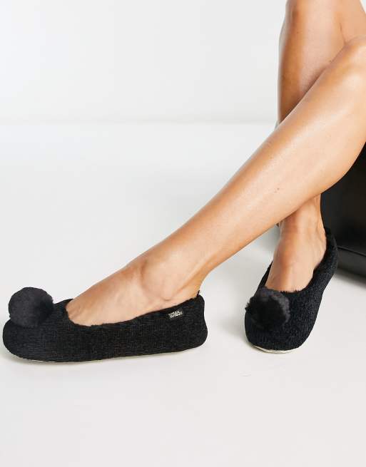 Totes fur pom pom ballet slipper in black