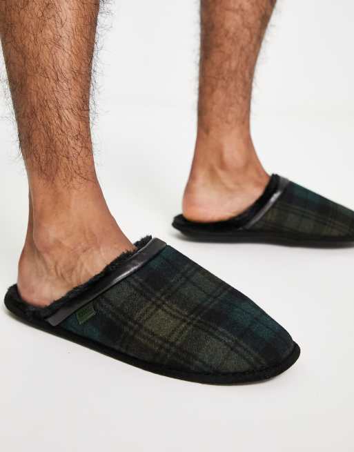 Totes mule slippers in khaki plaid