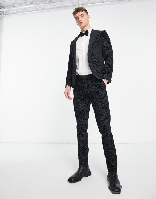 Twisted Tailor helfand skinny suit in charcoal with flocked leopard print