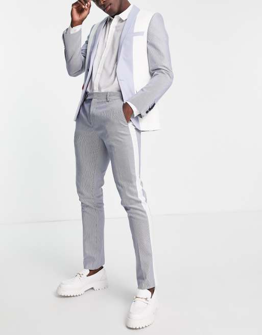 Twisted Tailor triptych skinny fit suit pants in white and blue stripe panels