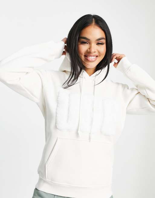 UGG Rey fuzzy logo hoodie in white