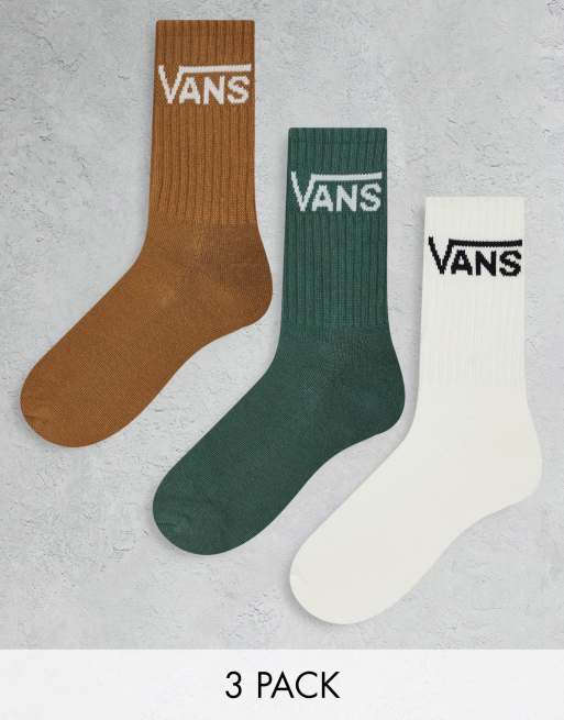 Vans classic crew 3-pack socks in green/brown/white