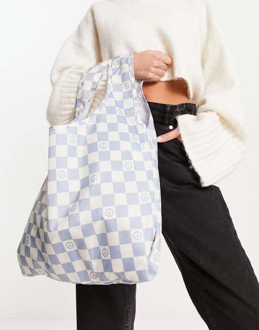 Vans Contortion checkerboard tote bag in blue/white
