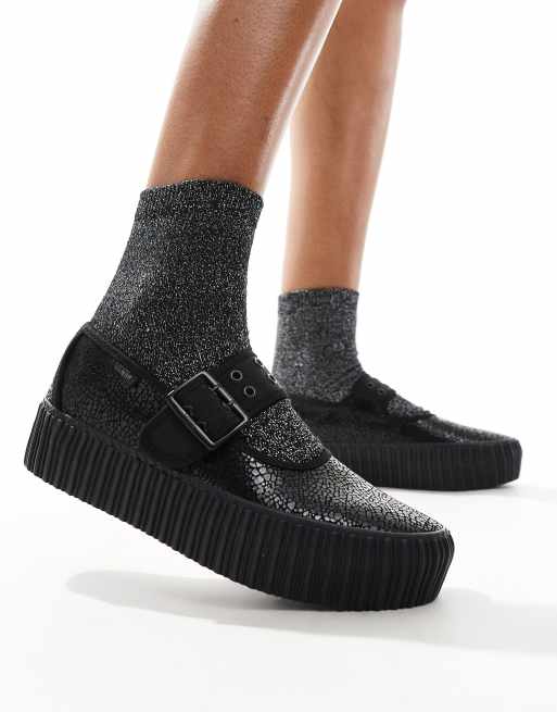 Vans Mary Jane Creeper shoe with snake print detail in black