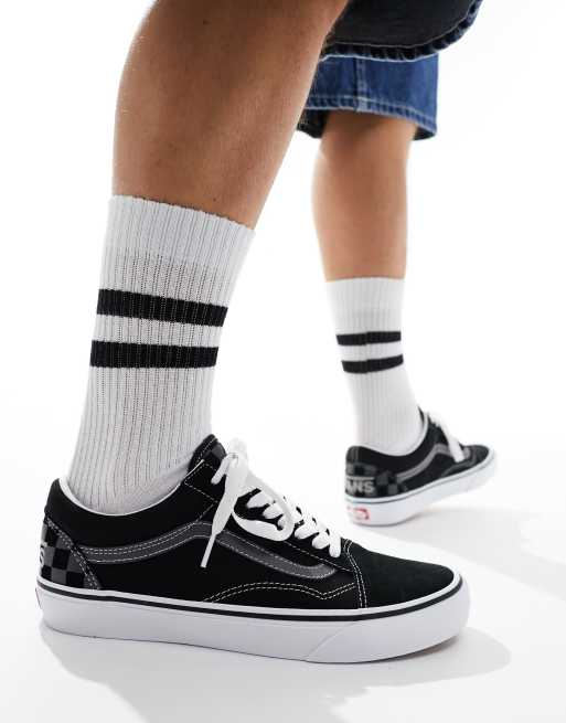 Vans Old Skool logo checkerboard sneakers in black
