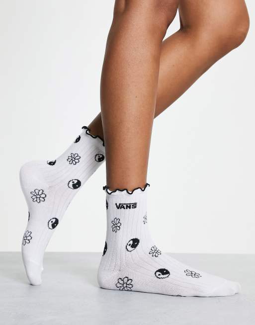 Vans ruffle crew socks in white and black