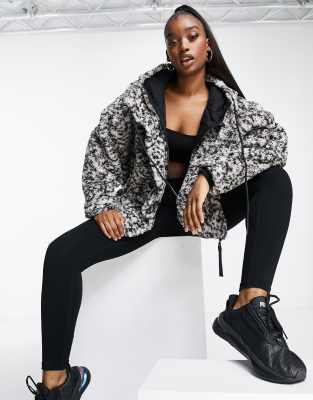 Varley Montalvo hooded faux shearling jacket in gray leopard print