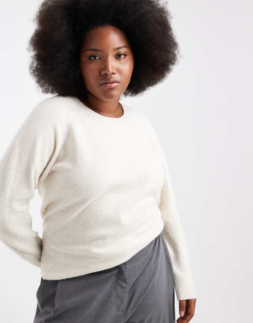 Vero Moda Curve soft round neck knit sweater in cream