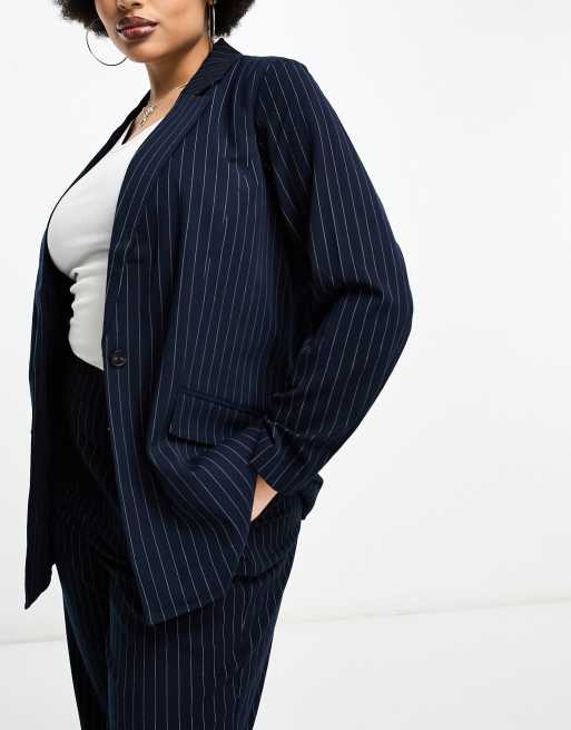 Vero Moda Curve tailored pinstripe blazer in navy - part of a set