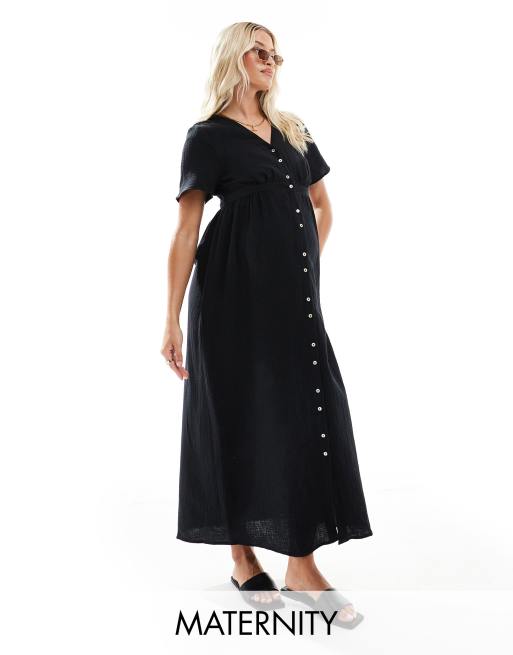 Vero Moda Maternity buttondown midi dress in black
