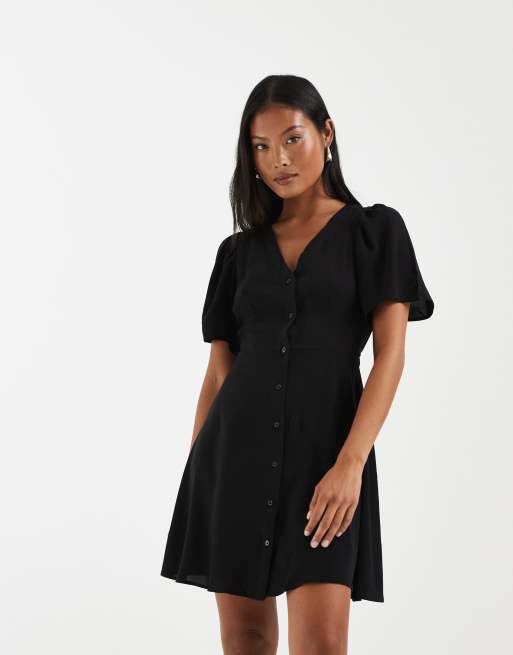 Vero Moda Petite button up mini skater dress in black