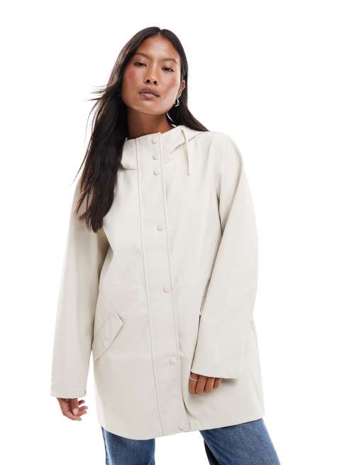 Vero Moda Petite coated rain jacket with hood in moonbeam stone