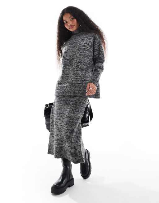 Vero Moda Petite knitted midi skirt in mono melange - part of a set