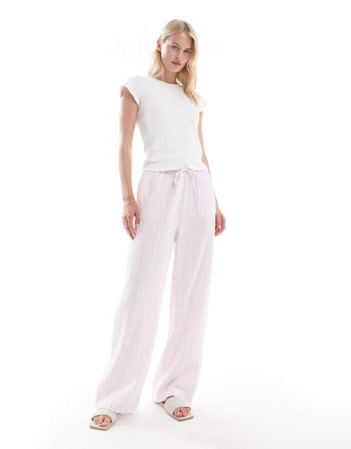 Vero Moda Tall cotton wide leg pants in pale pink stripes