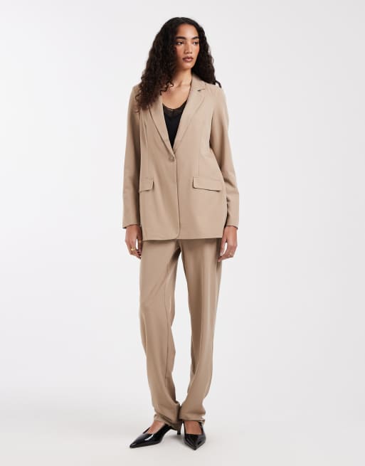 Vero Moda Tall loose fit tailored blazer and straight leg pants set in beige