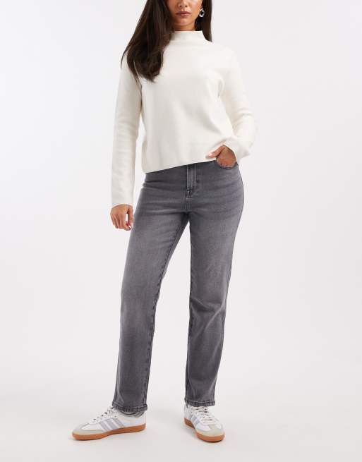 Vero Moda Amara straight leg ankle length stretch jeans in gray wash