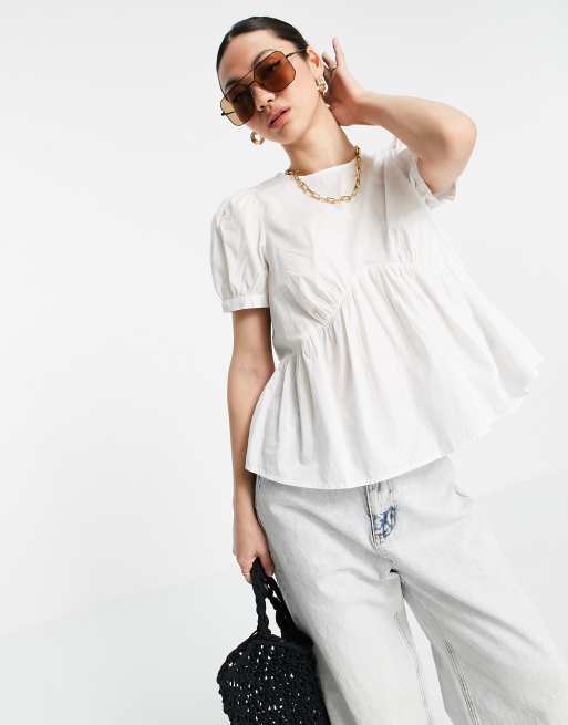 Vero Moda cotton peplum blouse in white