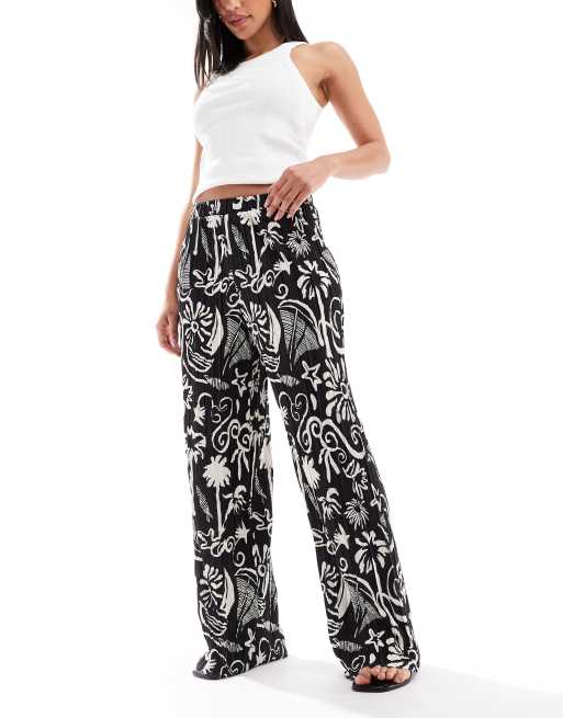 Vero Moda high rise wide leg plisse pants in tropical conversational print