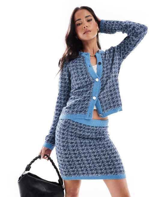 Vero Moda knit houndstooth cardigan in blue - part of a set