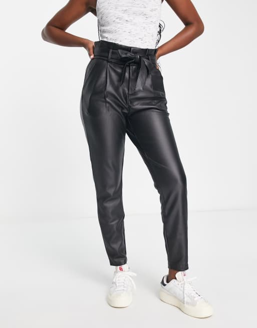 Vero Moda leather look tapered pants in black