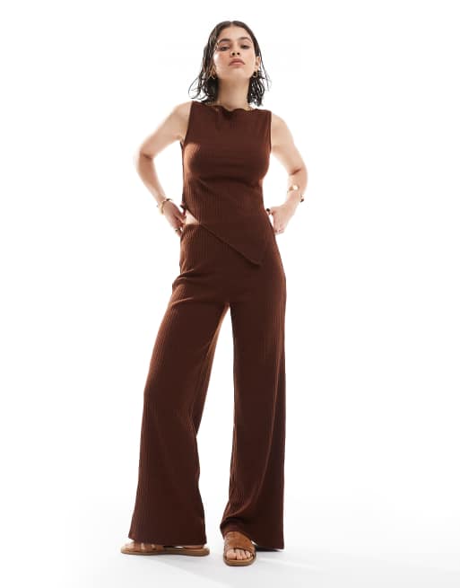 Vero Moda ribbed sleeveless top and pants set in chocolate
