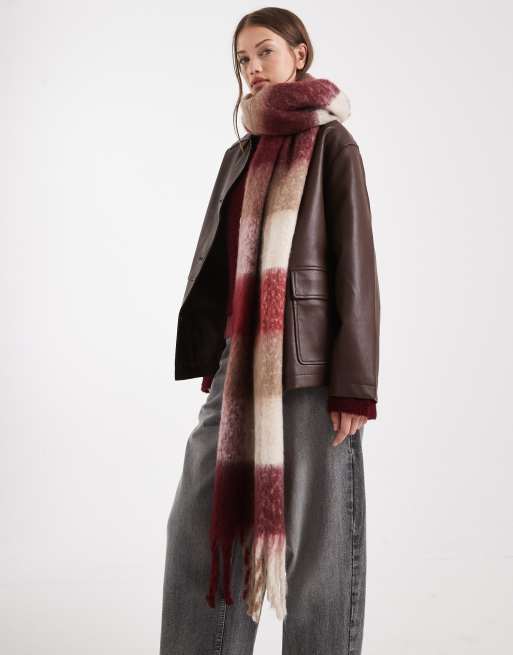 Vero Moda soft boucle scarf in cream and burgundy plaid
