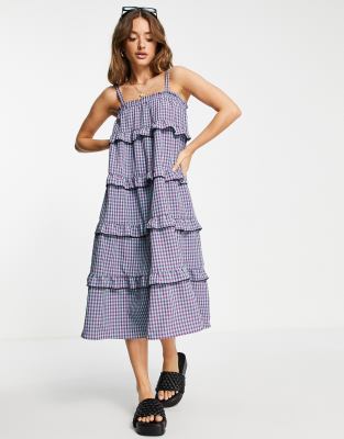 Vero Moda strappy tiered smock mini dress in mixed check