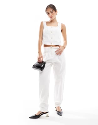 Vero Moda tailored square neck vest and barrel leg pants set in white