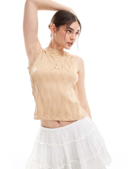 Vero Moda textured tank top with capped sleeve in beige