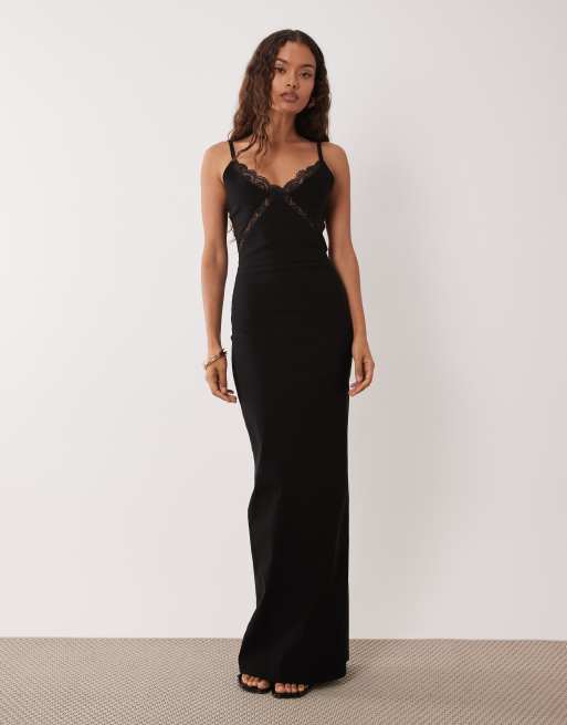 Vesper Petite bengaline cami lace detailing maxi dress in black