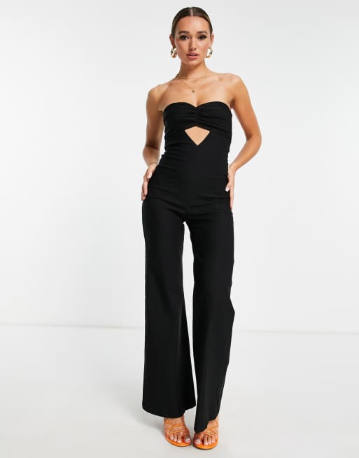 Vesper bengaline bandeau peekaboo detail wide leg jumpsuit in black