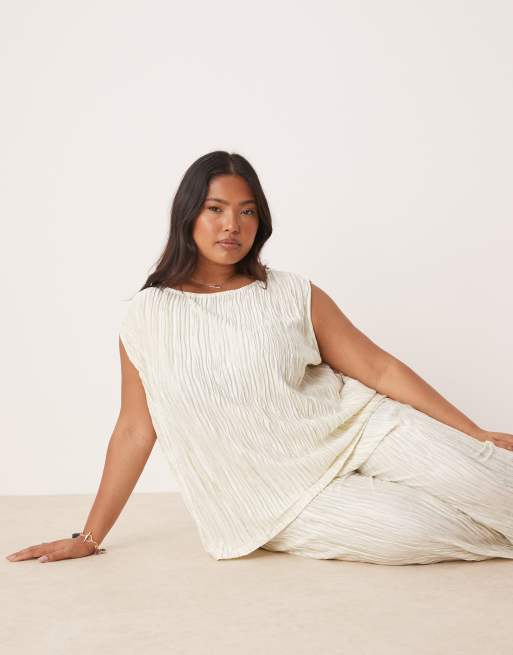 Vila Curve plisse slash neck sleeveless top in pale silt green tie dye - part of a set