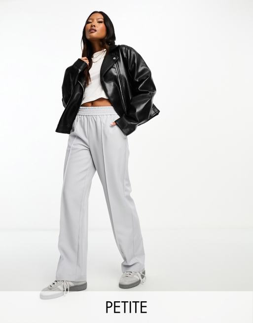 Vila Petite elastic waist wide leg pants with pintuck front in gray
