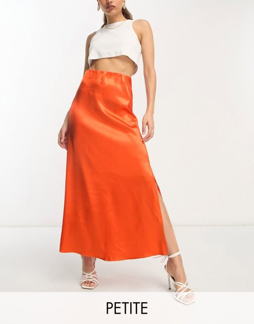 Vila Petite satin midi skirt in orange