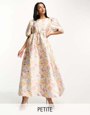 Vila Petite shimmer jacquard midi prom dress in pastel floral