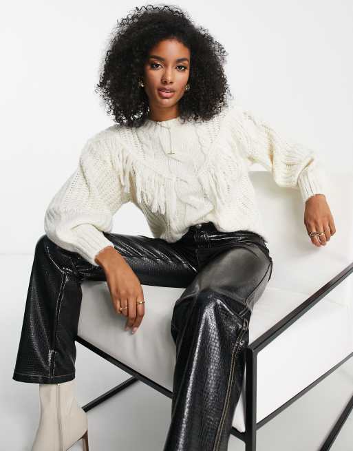 Vila cable knit sweater with frill detail in cream