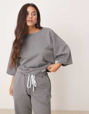 VILA jersey tailored boxy top in gray pinstripe - part of a set
