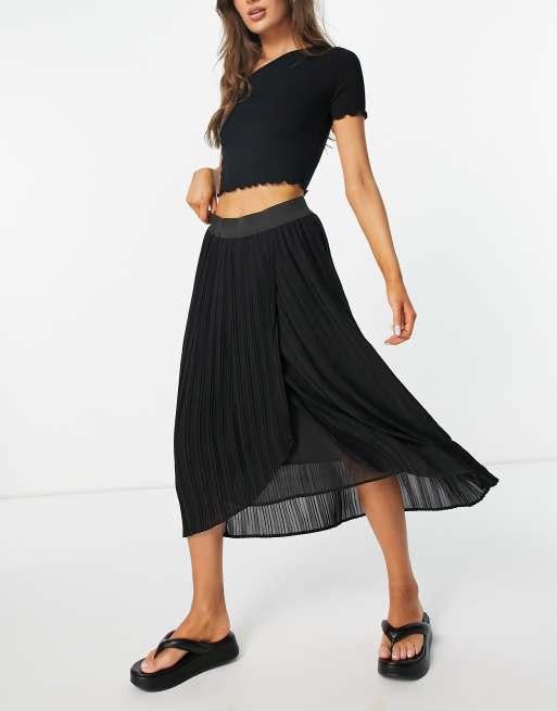 Vila pleated midi wrap skirt in black