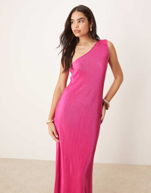 Vila plisse one-shoulder sleeveless maxi dress in raspberry pink