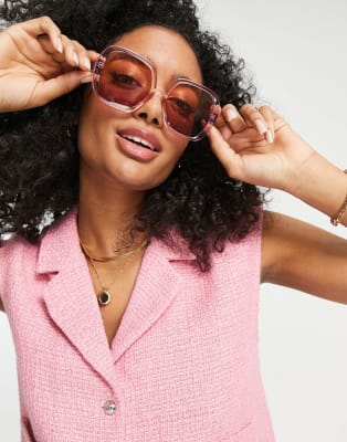 Vila tailored vest and shorts in pink boucle