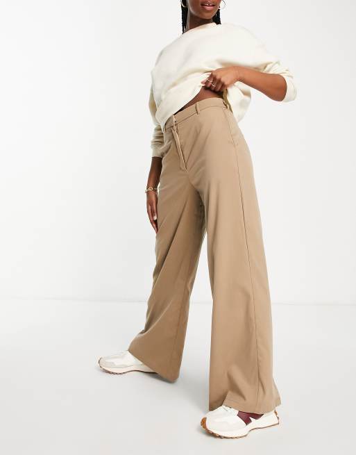 Vila tailored wide leg pants with split back in camel