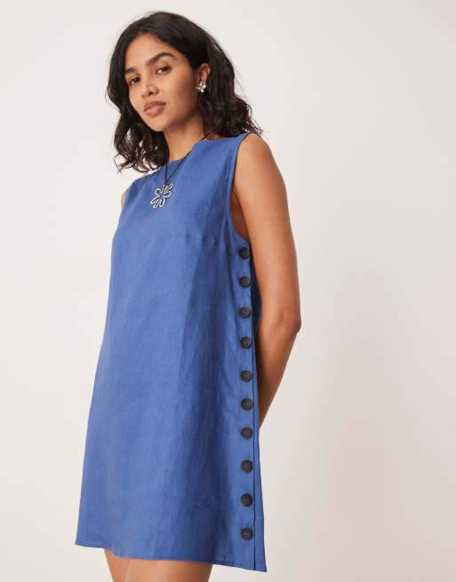 VRG GRL annabelle side buttons a-line mini dress in deep blue