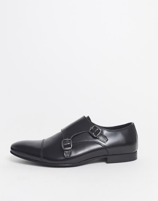 Walk London luca monk shoes in black high shine
