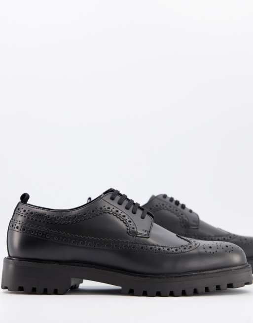 Walk London sean brogues in hi-shine black