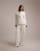 Wanderdoll Charlotte Bridal oversized lapels cinched waist blazer and wide leg pants set in white