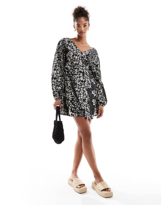 Wednesday's Girl mini smock dress in black and white floral