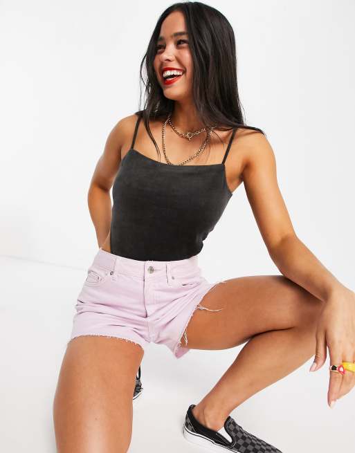 Weekday Addena cotton velour body in black - BLACK